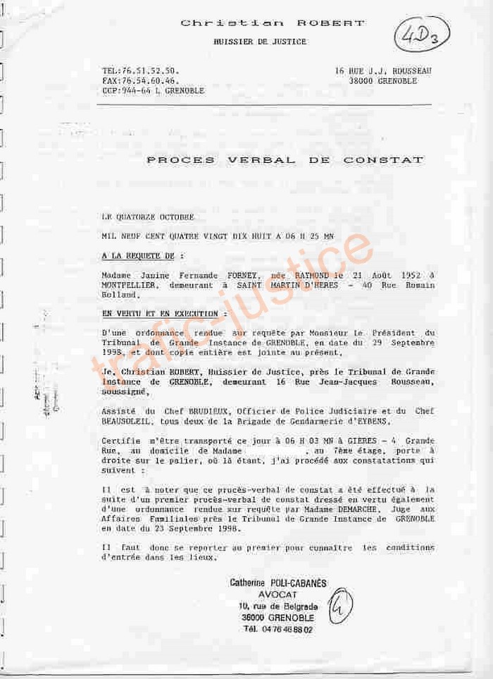 L'huissier ROBERT Christian oublie sur son PV le 3e Policier ripou CHARLON Pierre ! ! = Faux criminel |