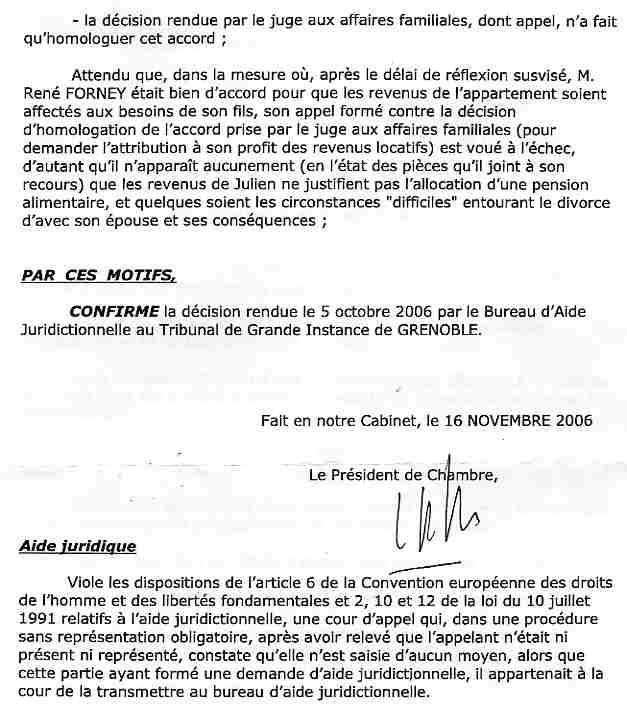 M Alain URAN du bureau d'aide juridictionnelle, sur recours, juge directement le rendu du jugement de 1er instance et refuse l'aide juridictionnelle sur la base d'une fausse affirmation d'une durée écoulée de trois mois alors que le jugement fait état de 14 jours écoulés en page 2.
