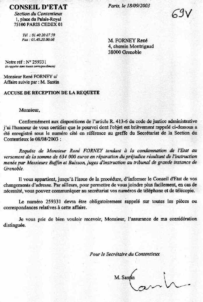 Le conseil d'Etat a enregistré la requête pour faute lourde contre les juges Bernard Buffin et Buisson Jacques. L'affaire est suivi par M Santin.