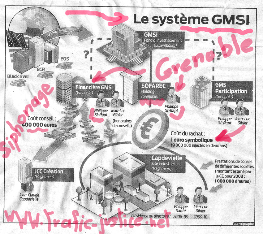 Capdevielle a été rachetée en 2008 parle fonds luxembourgeois GMSI pour l'euro symbolique, via la Sofarec, créée pour l'occasion, et avec l'aide de deux sociétés grenobloises, Financière GMS et GMS Participation. Qui était le véritable maître à bord ? La société GMSI étant immatriculée au Luxembourg et dépendant de fonds basés aux îles Caïmans, elle n'a pas été attaquée parles salariés. Restent les trois autres, soupçonnées d'être les émanations du fonds d'investissement et d'avoir exercé une tutelle opérationnelle à différents niveaux. Peu-