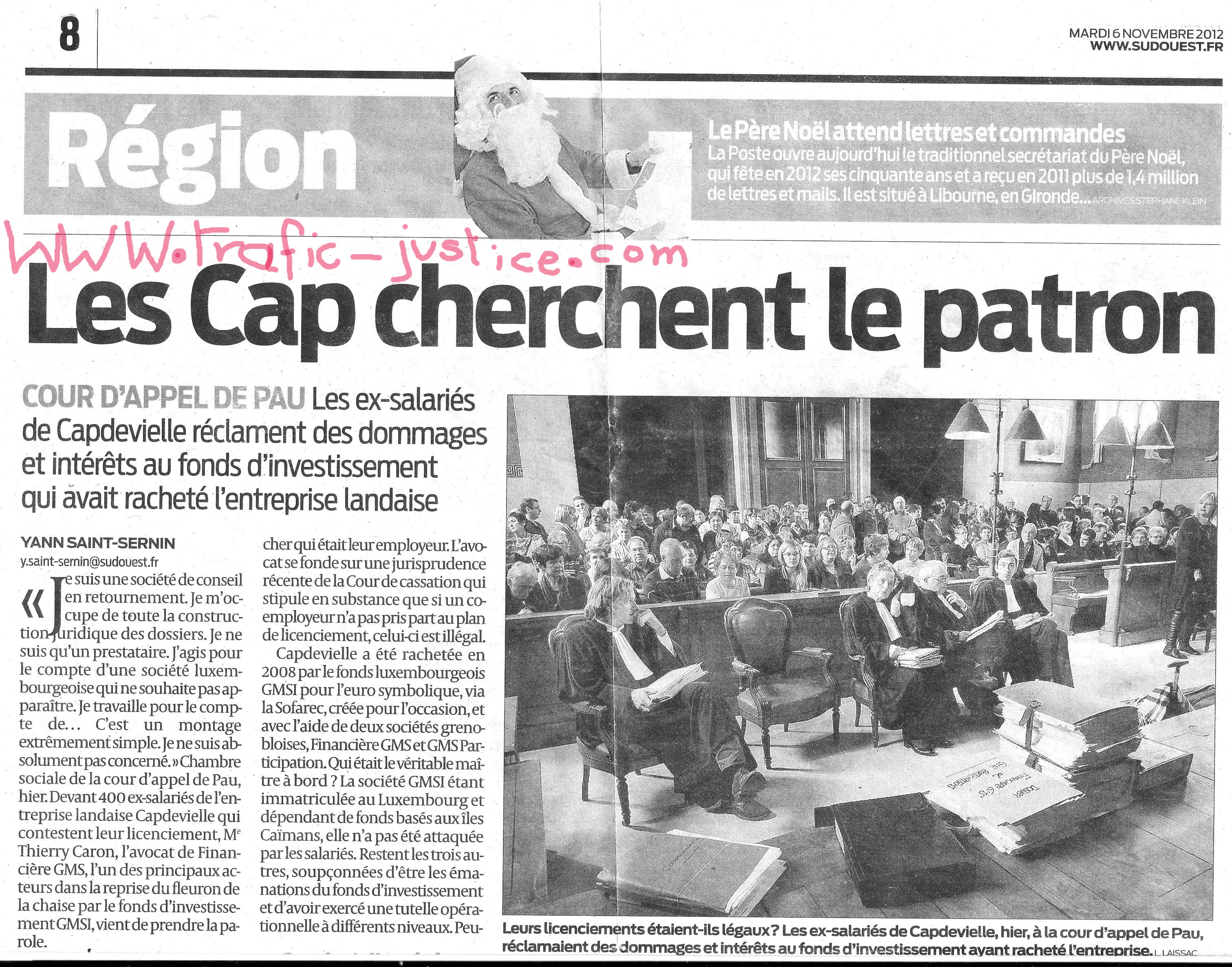 Rarement le montage entourant la prise de contrôle d'une société en difficulté par un fonds d'investissement aura fait l'objet d'un tel examen. D'un côté, une enquête pénale toujours en cours cherche à déterminer si les derniers mois qui ont précédé la chute tragique de la société landaise n'ont pas donné lieu à des opérations illégales. De l'autre, un marathon judiciaire. Un an et demi de bataille, déjà. Dix huit mois afin de purger toutes les questions de procédure. Hier, pour la première fois, des magistrats allaient examiner le dossier sur le fond. Le dernier combat des Cap, derrière cette question : Les licenciements qui les ont laissés sur le carreau en 2009 et 2010 étaient-ils légaux ?