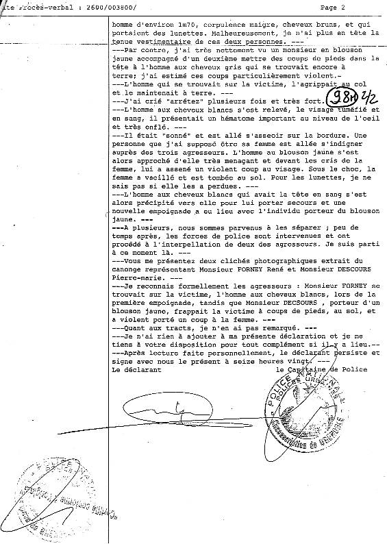 15 jours après les faits, ce faux témoin adverse est rajouté par le juge Pradier Jean-Pierre pour palier aux défaillances des dépositions des deux autres témoins sollicités dans la précipitations. Les explications (pour cette pièce) |
