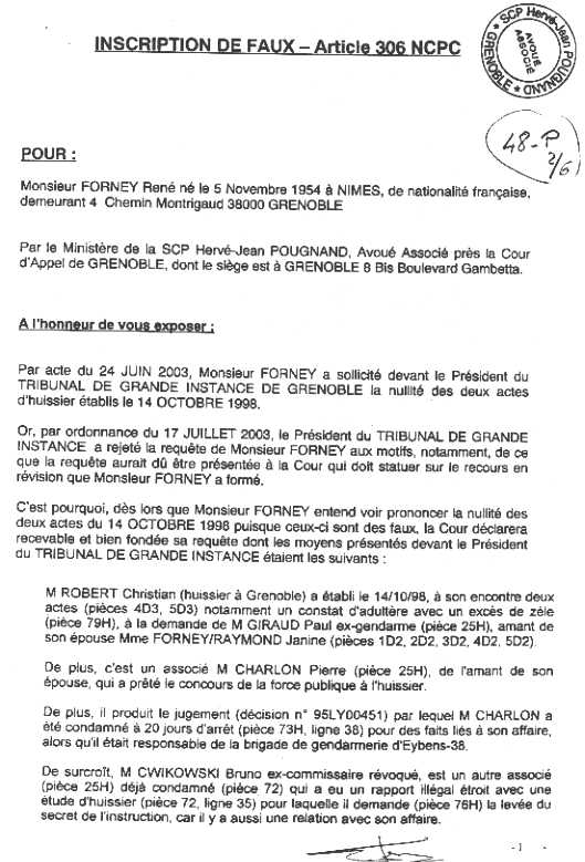 Accueil L'inscription de faux est relancée en 2008 avec deux PV de police qui contredisent les déclarations de l'huissier ROBERT Christian |