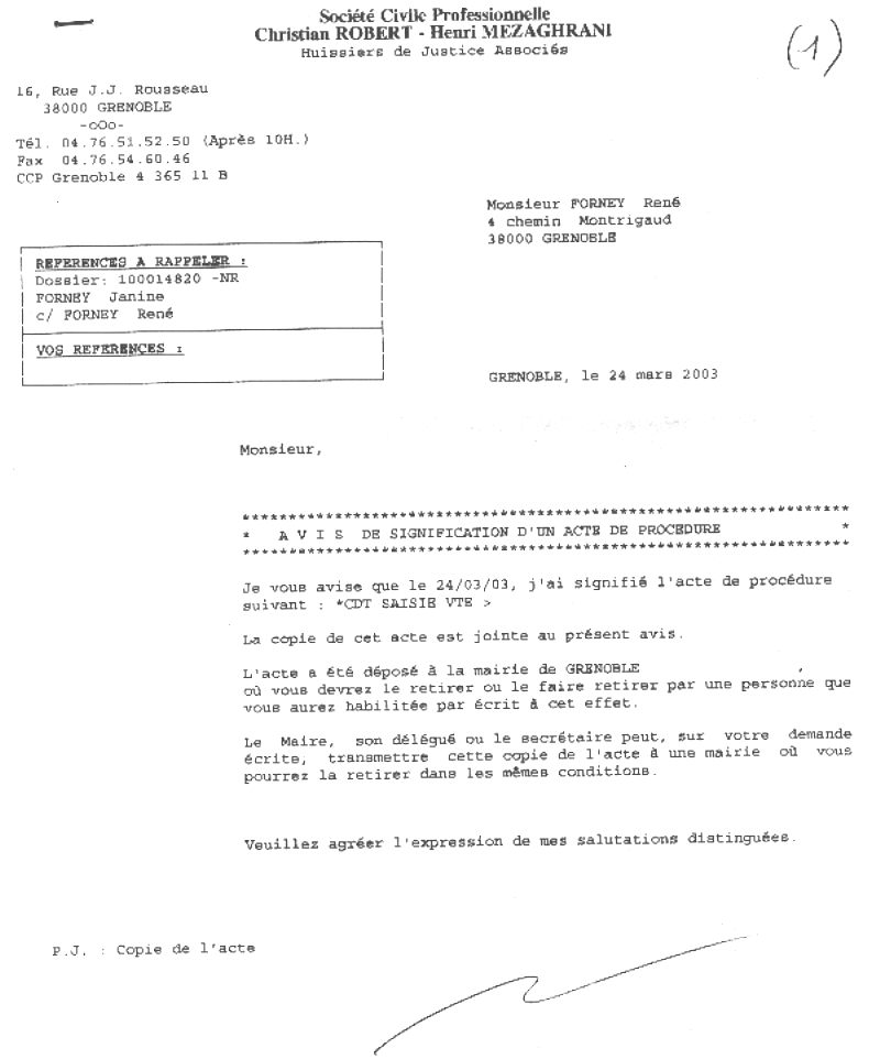 Accueil Inscription de faux 2008 Voir la requête en nullité contre l'huissier Christian ROBERT qui a utilisé l'associé de l'amant de l'épouse pour le concours de la force publique contre M FORNEY.