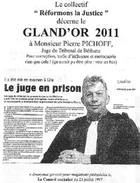 La protection des brebis galeuses dans les rangs de la police et de la justice nécessite le recours à d'autres moyens comme ceux employés ci-dessous, ou, comme moi en dénonçant sans ménagement les truands de nos institutions sur Internet. |