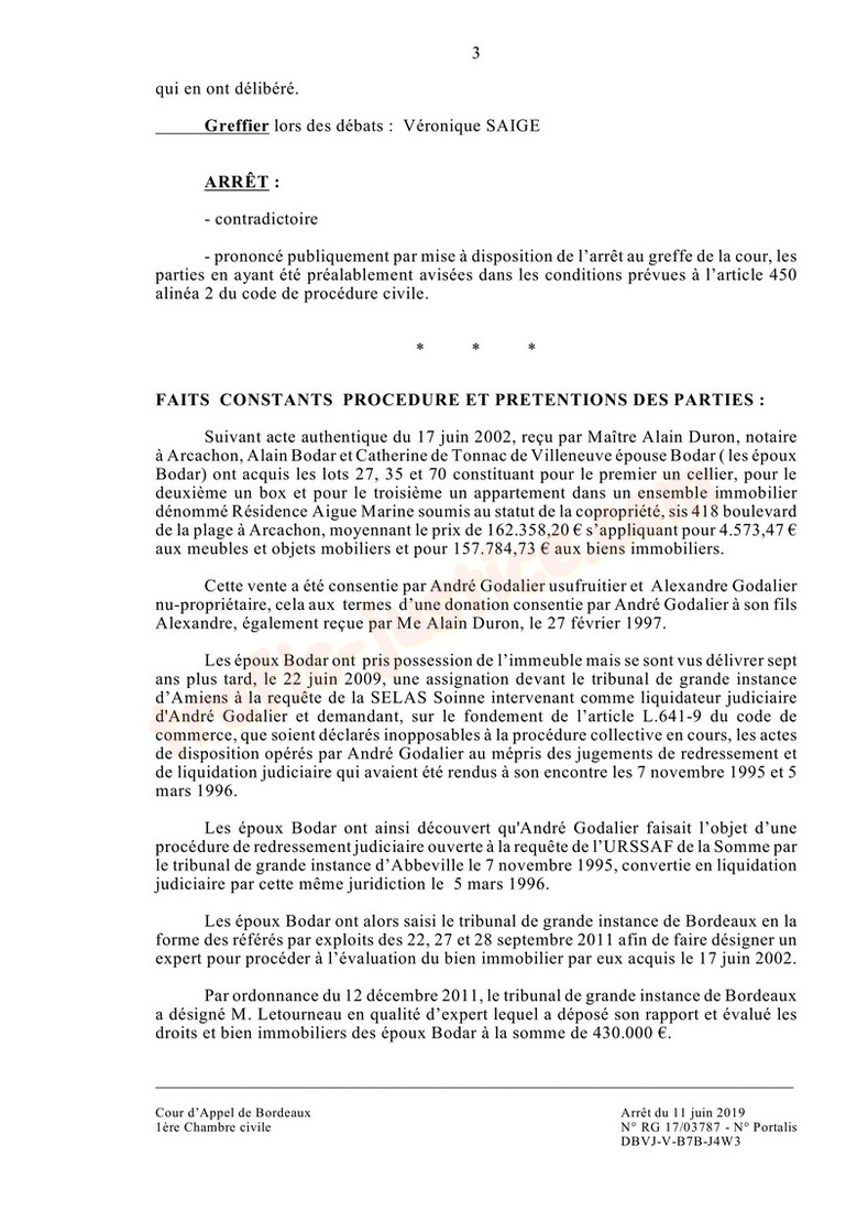 Bodar) ont acquis les lots 27, 35 et 70 constituant pour le premier