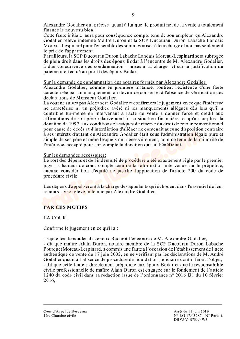 Par ailleurs, la SCP Ducourau Duron Labache Landais Moreau-Lespinard