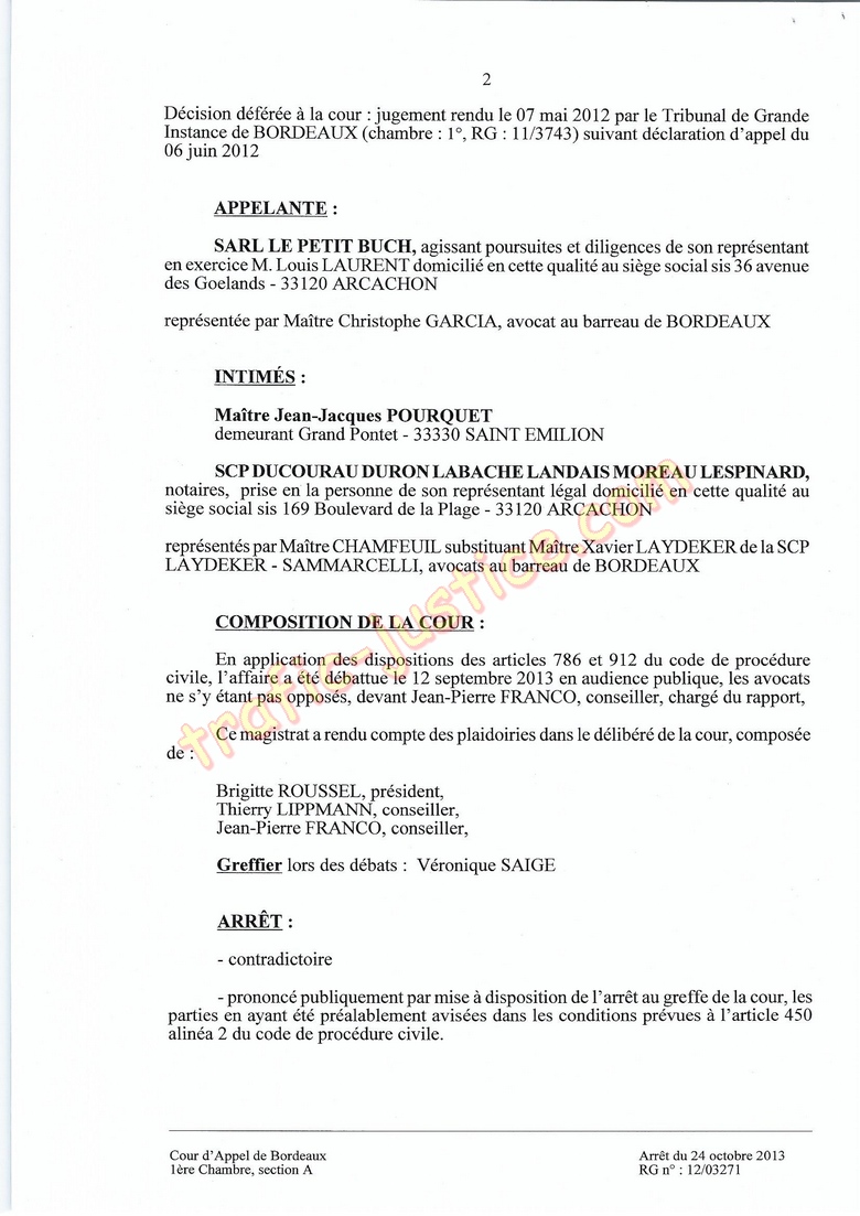 Profession: Notaire, demeurant 169 Boulevard de la Plage - 33120 ARCACHON