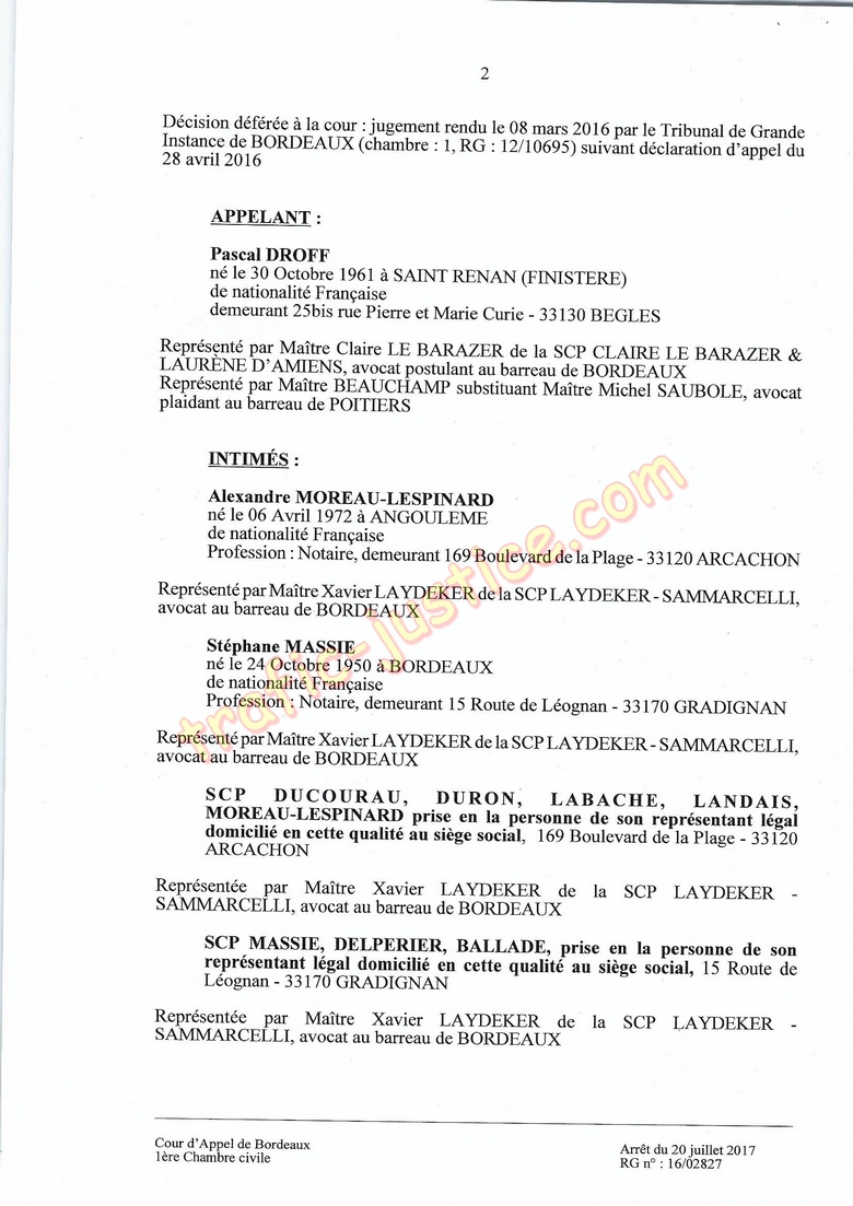 Delperier, maître Alexandre Morau- Lespinard, et la SCP Ducourau