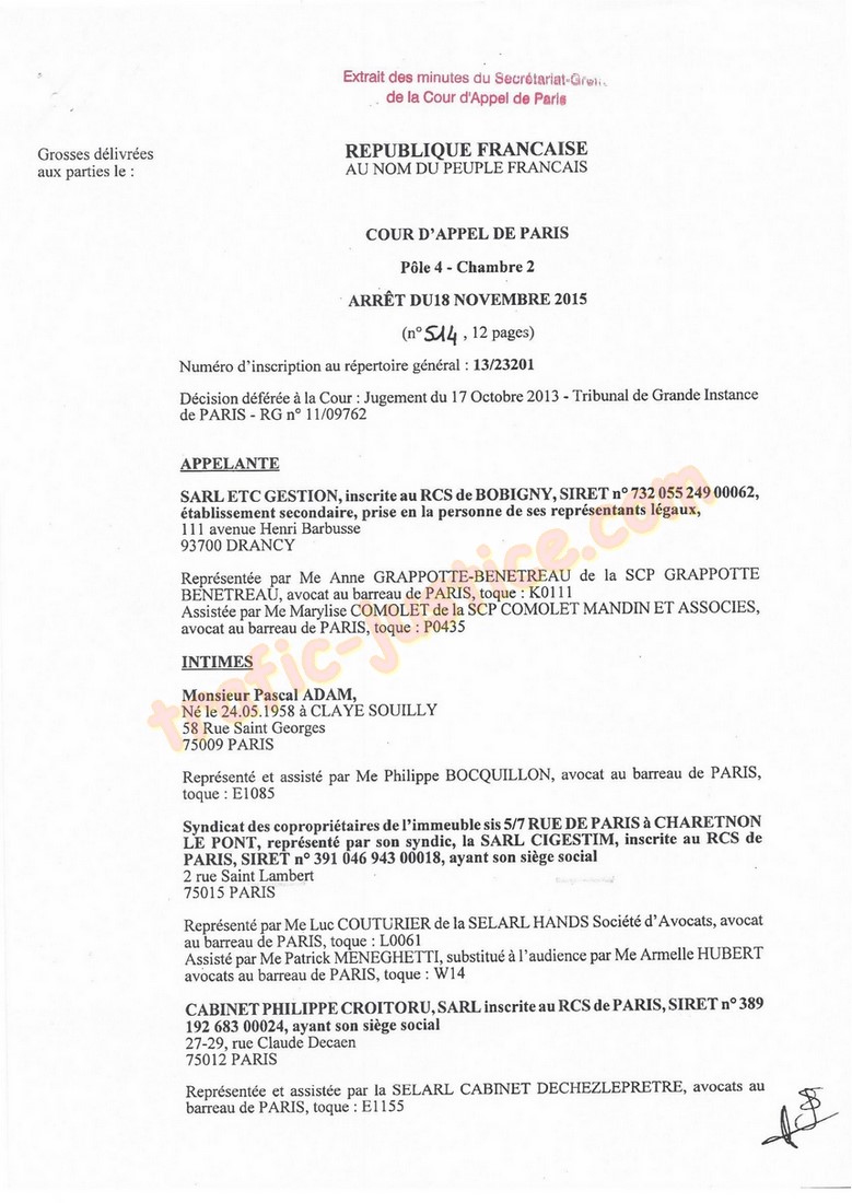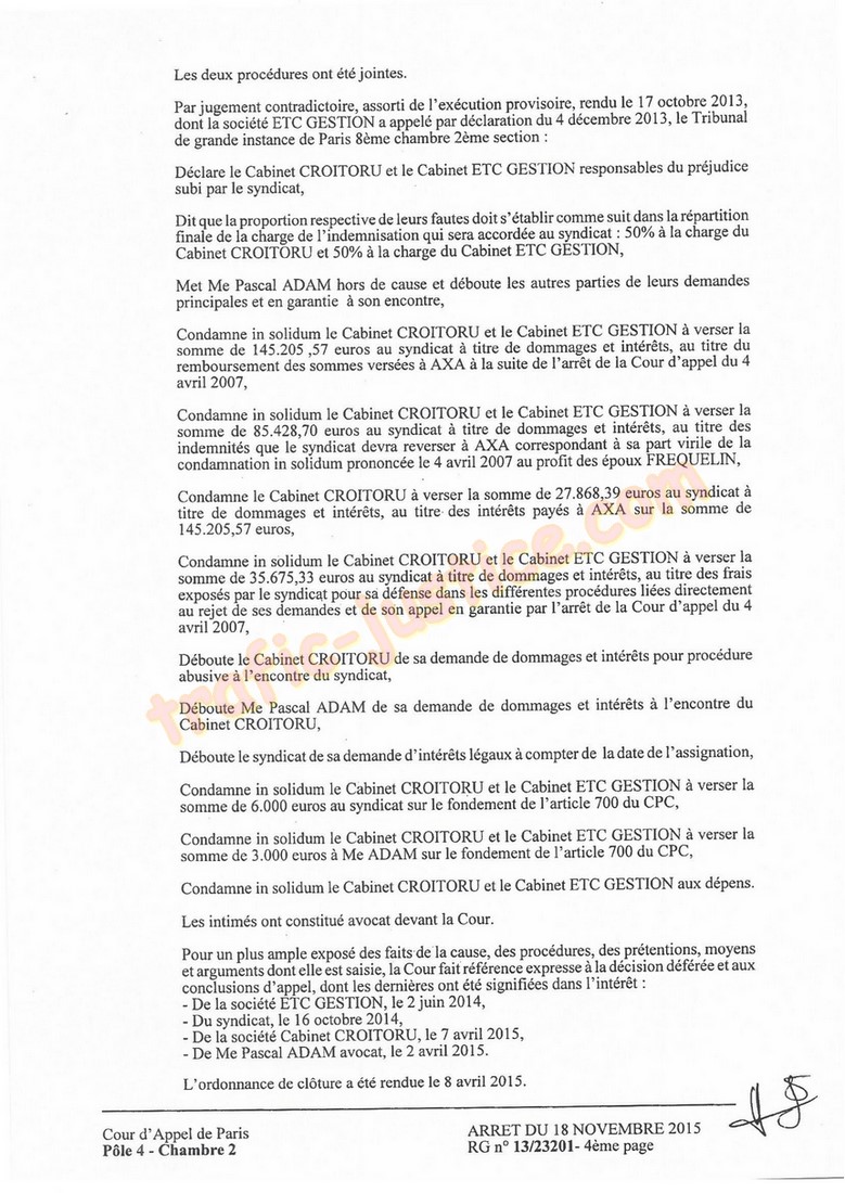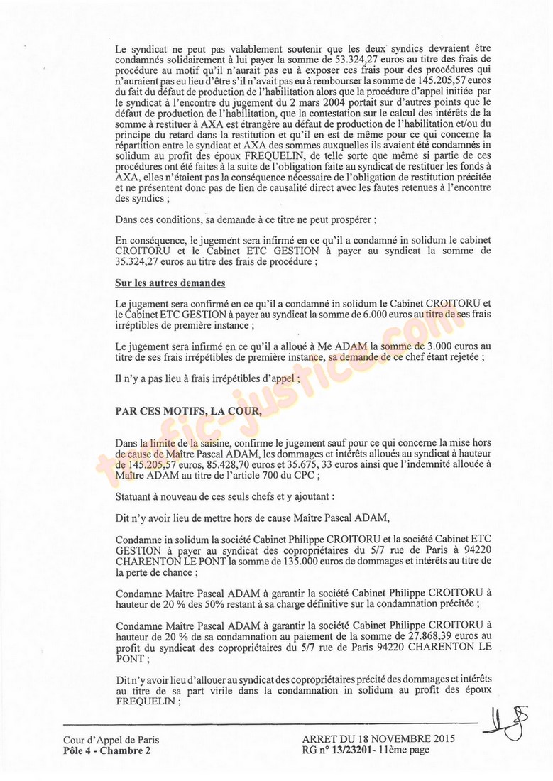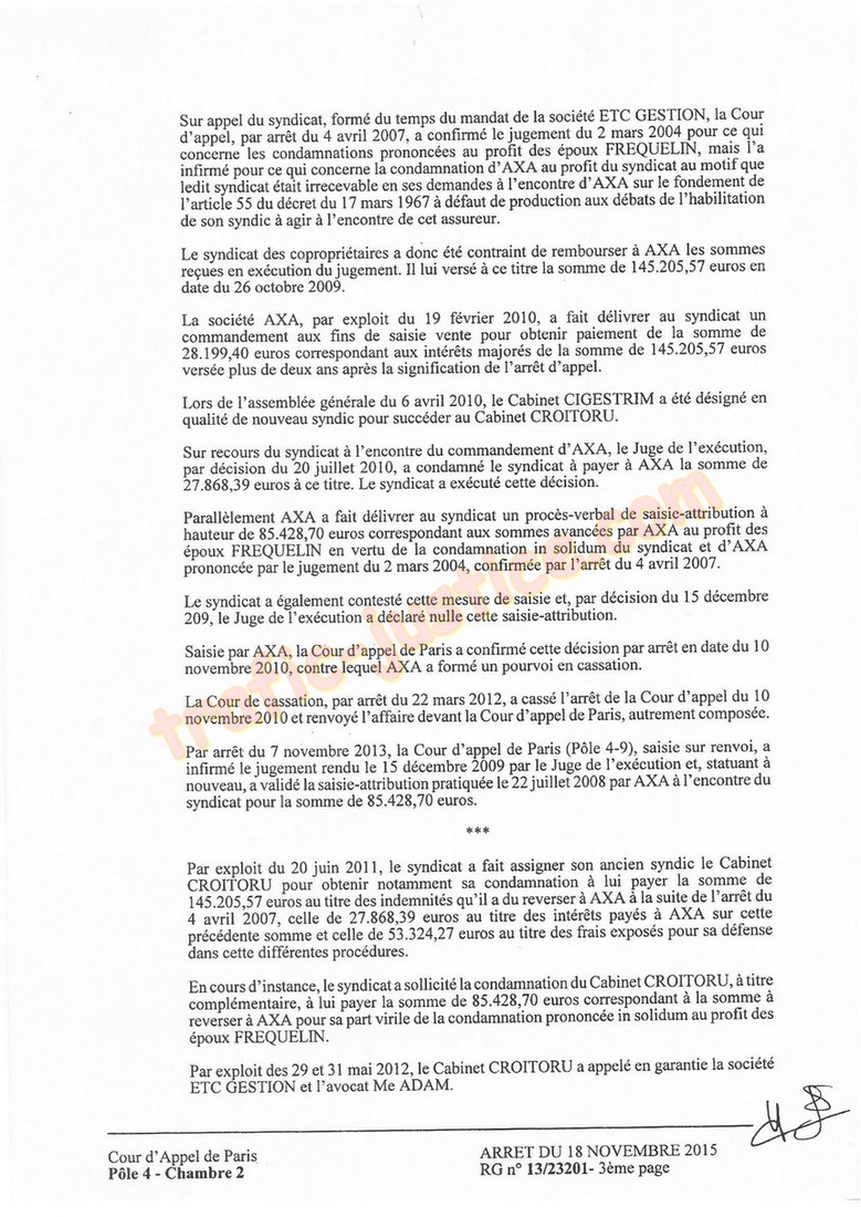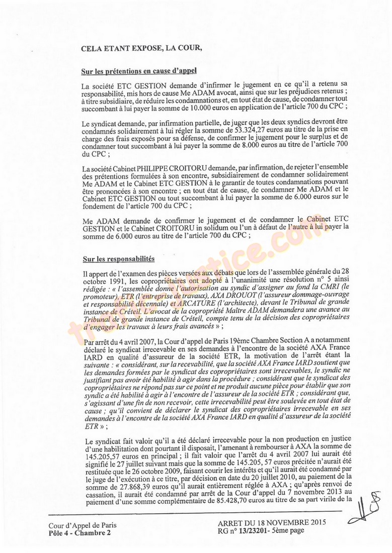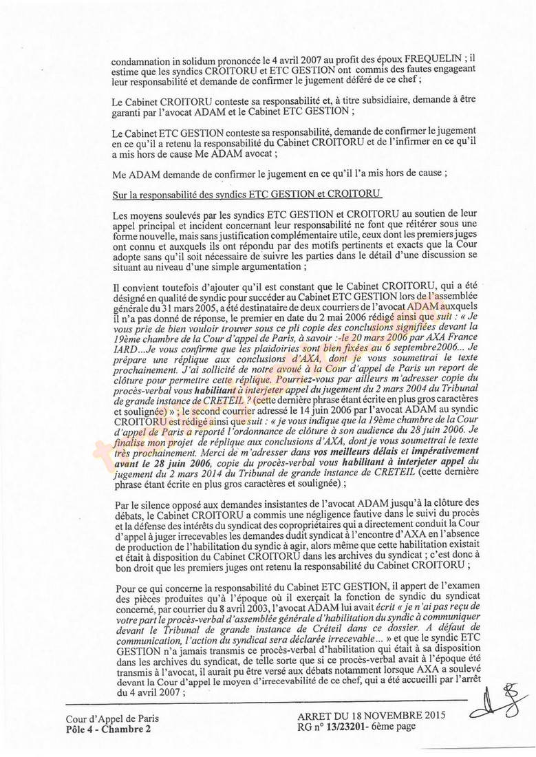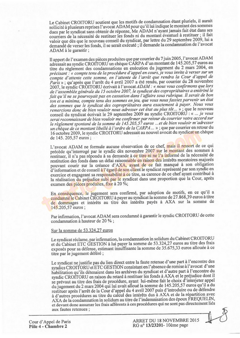 2007, lesyndic CROITORU écrivait à lavocat ADAM : (r nous vous confrmons que lors