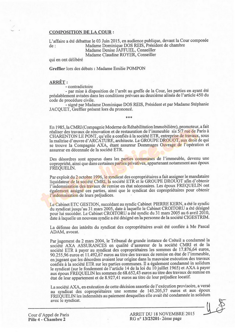 - ARRÊT DU18 NOVEMBRE 2015