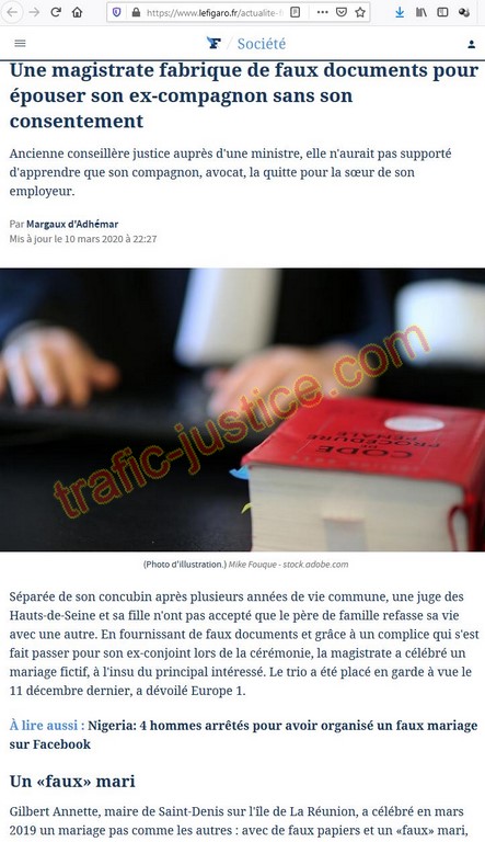 https://www.lefigaro.fr/actualite-france/une-magistrate-fabrique-de-faux-documents-pour-epouser-son-ex-compagnon-sans-son-consentement-20200310