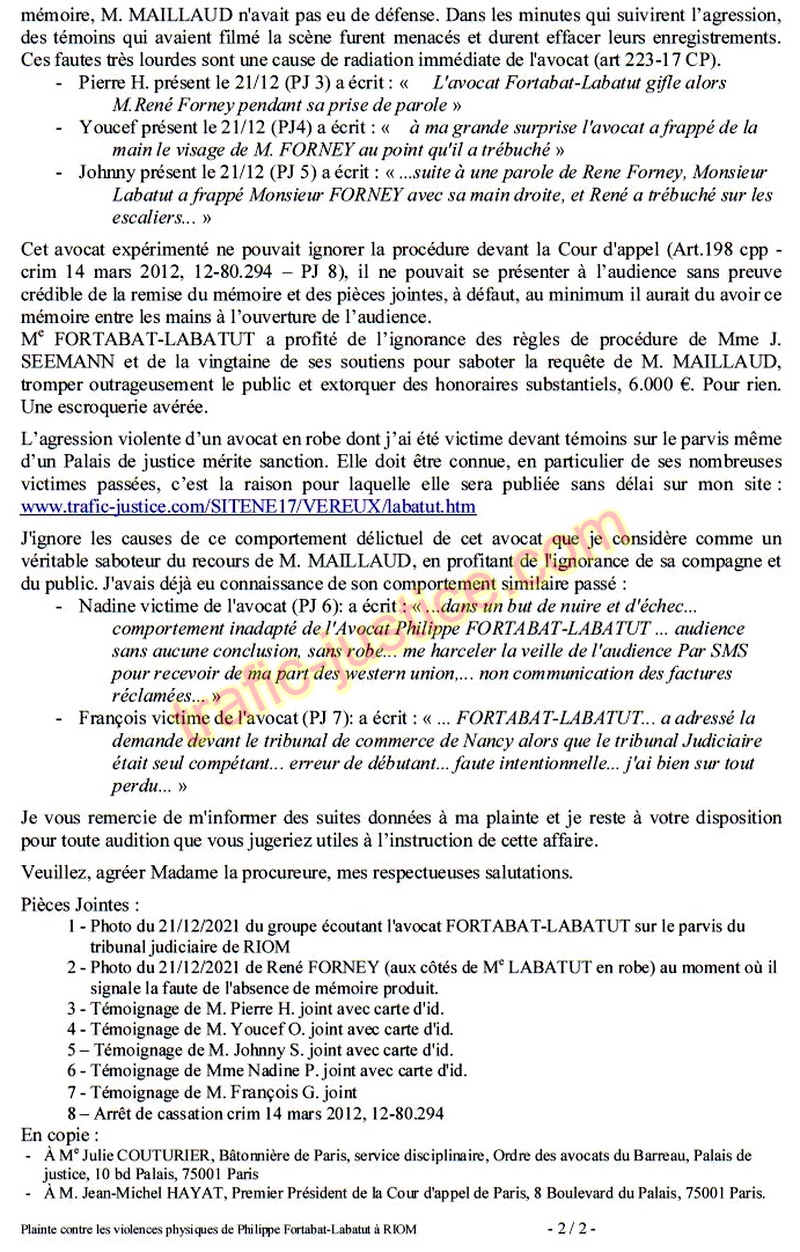 | Dérives dans le milieu des avocats : a-v - o - c - a - t -s (Idem Grasse / Paris) et, sur le reste de la France | |||