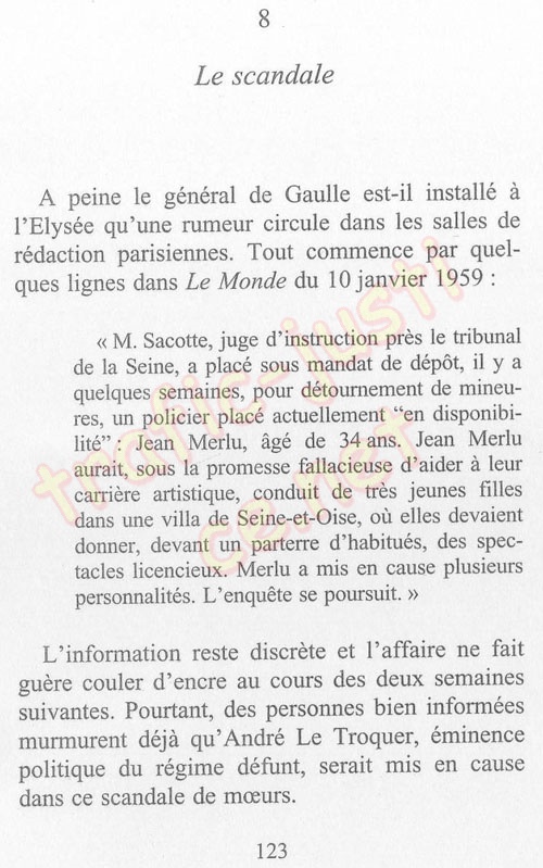 Le scandale À peine le général de Gaulle est-il installé à l'Elysée qu'une rumeur circule dans les salles de rédaction parisiennes. Tout commence par quelques lignes dans Le Monde du 10 janvier 1959 :