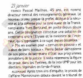 l'intérieur, qui s'opposait à ce sujet depuis décembre Mis en examen pour corruption passive et abus de biens sociaux Pierre Bédier démissionne de son poste de secrétaire d'Etat aux programmes immobiliers de la justice. Il reste néanmoins la figure de proue, dans les yvelines, de la liste UMP pour les élections régionales en ïles de France |