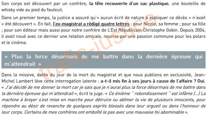 Ci-dessous, ce juge ne supportait-il pas d'avoir été réduit au silence ou avait-il accepté des pressions pour protéger certains criminels ? Il écrit : " Certains de mes confrères ont emboité le pas avec une mauvaise foi abominable" ! ! ! |