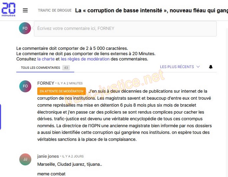 J'en suis à deux décennies de publications sur internet de la corruption de nos institutions. Les magistrats savent et beaucoup d'entre eux ont trouvé comme représailles ma mise en détention 6 puis 8 mois plus six mois de bracelet électronique et j'en passe car des policiers se sont rendus complices pour cacher les dérives. trafic-justice est devenu une véritable encyclopédie de tous ces corrompus nommés. La directrice de l'IGPN une ancienne magistrate bien informée par nos dossiers a aussi bien identifié cette corruption qui gangrène nos institutions. on espère tous des véritables sanctions à la place de la complaisance.