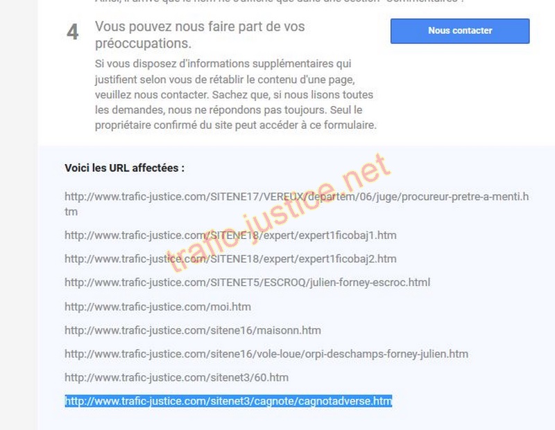 Les liens effacés par Google qui sont les preuves du recel de biens immobiliers volés à la vente par l'agence immobilière ORPI de sait Egrèves en relation avec l'etude du notaire mafieux DESCHAMPS (Suite Oralia) www.trafic-justice.com/SITENE18/expert/expert1ficobaj1.htm www.trafic-justice.com/SITENE18/expert/expert1ficobaj2.htm www.trafic-justice.com/SITENET5/ESCROQ/julien-forney-escroc.html www.trafic-justice.com/moi.htm www.trafic-justice.com/sitene16/maisonn.htm www.trafic-justice.com/sitene16/vole-loue/orpi-deschamps-forney-julien.htm www.trafic-justice.com/sitenet3/60.htm www.trafic-justice.com/sitenet3/cagnote/cagnotadverse.htmUTILISEZ LE FORMULAIRE DE GOOGLE indiqué avec les liens signalés effacés des recherches AVEC CHROME POUR CONTESTER CETTE CENSURE qui grâce à GOOGLE protège les truands |