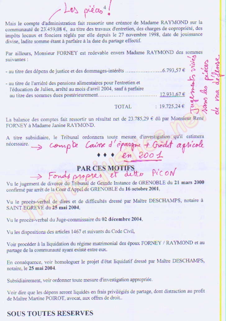 ! L'avocate affecte à l'ex-épouse Mme RAYMOND Janine