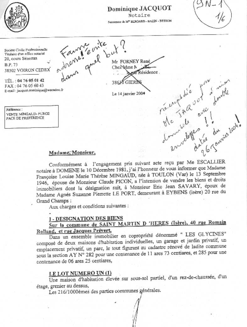 notaire M Jacquot Dominique tente de régulariser la faute (oubli du droit