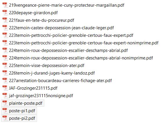 Mise en état au 29/03/16, Me GHOUTY suspendu de ses fonctions, pas assez soumis à la mafia judiciaire ? Alors une corrompue carpette Marion LASCI récupère le dossier début janvier pour tenter la méthode systématique (Jugé sans pièce ni conclusions) comme son amie BESSON-MOLLARD et BOTTA-AUBERT avec une communication au RPVA (Système informatique de la justice) de la moitié des pièces sans conclusions ( Son justificatif crapuleux remis le 25/03 à la veille d'une audience) alors qu'elle a tout par mail (+ CD + support papier + le NET ci-après) depuis 3 mois, et, se désiste sur place devant le juge GROZINGER et SAMBA à la mise en état.