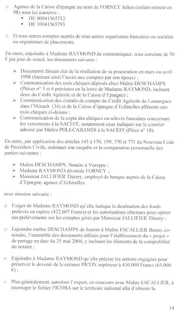Conclusions déposées lors de l'assignation au partage de la communauté et communiquée à l'expert désigné Me