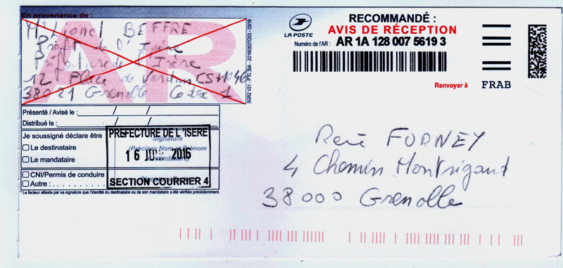 Sur le troisième extrait vous verrez comment ils ont ordonné à P. MIGEOU de bloquer pendant six semaines à la poste Chavant de Grenoble deux des lettres de l'avocat près la Cour de cassation et d'autres courriers des tribunaux parce que la cassation était certaine car la dépossession sans compensation est contraire à notre constitution.