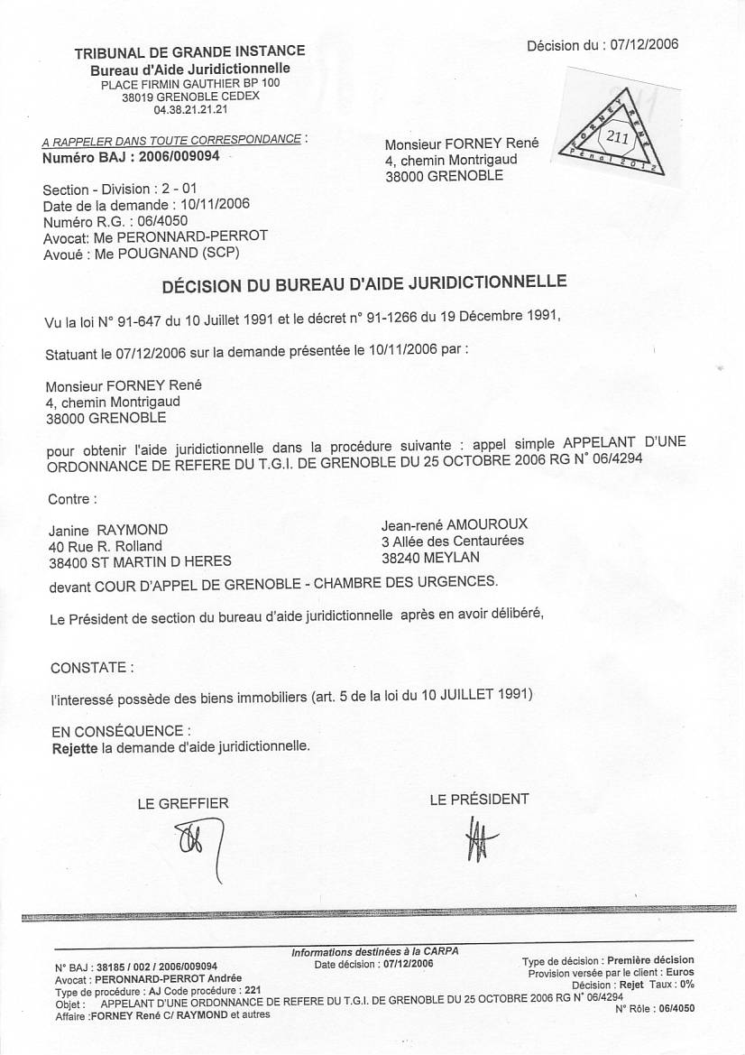 VOIR les décisons d'AJ refusées pour entraver le cours de la justice clic ICI