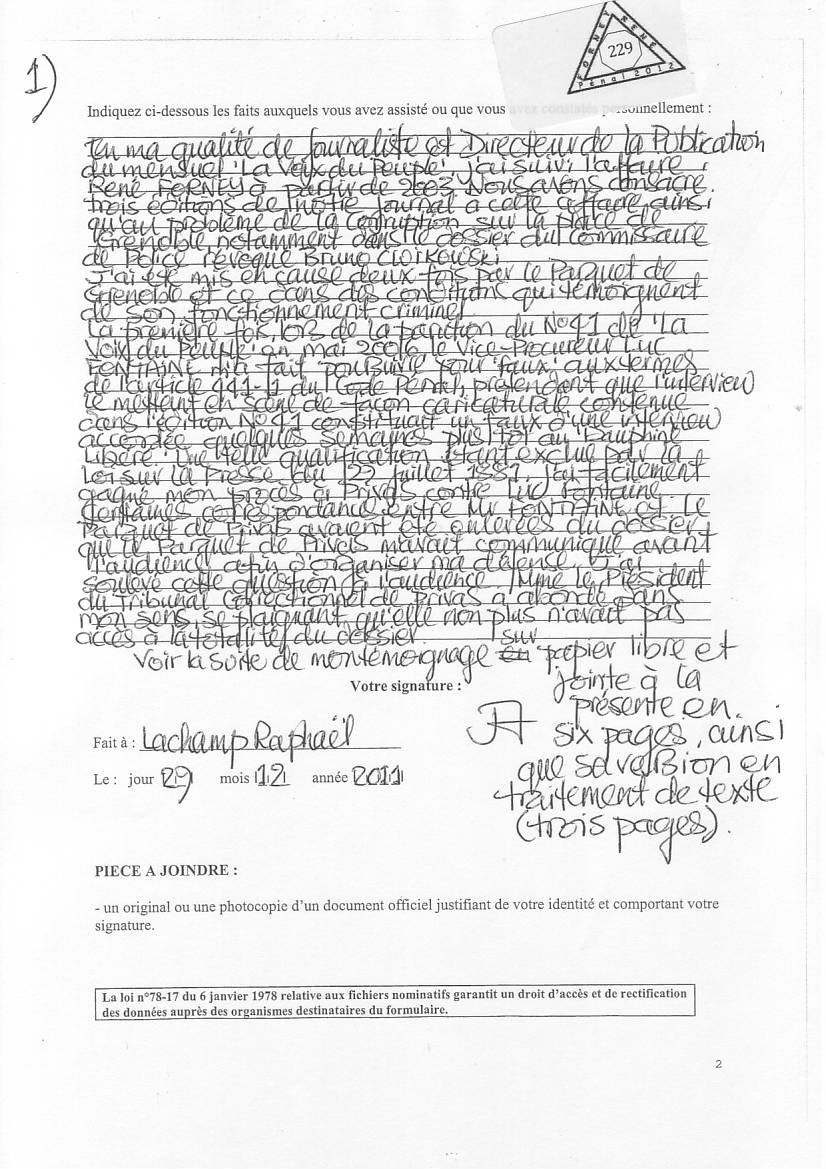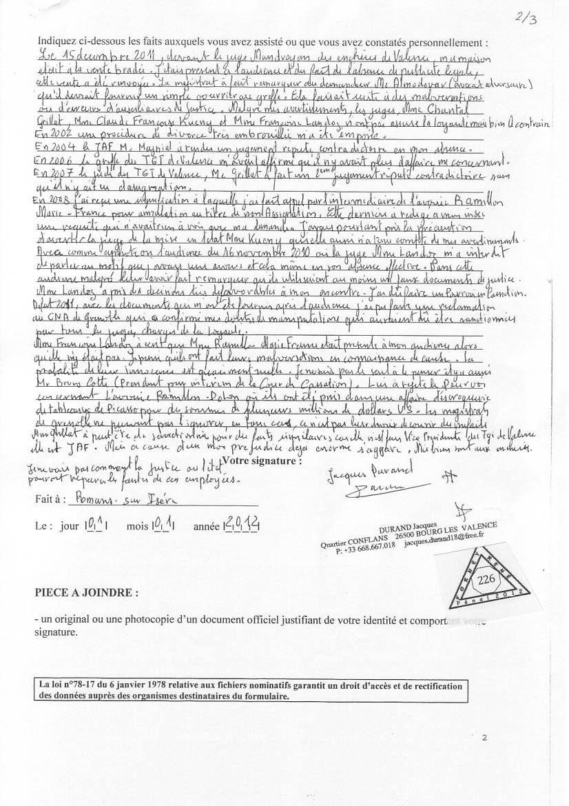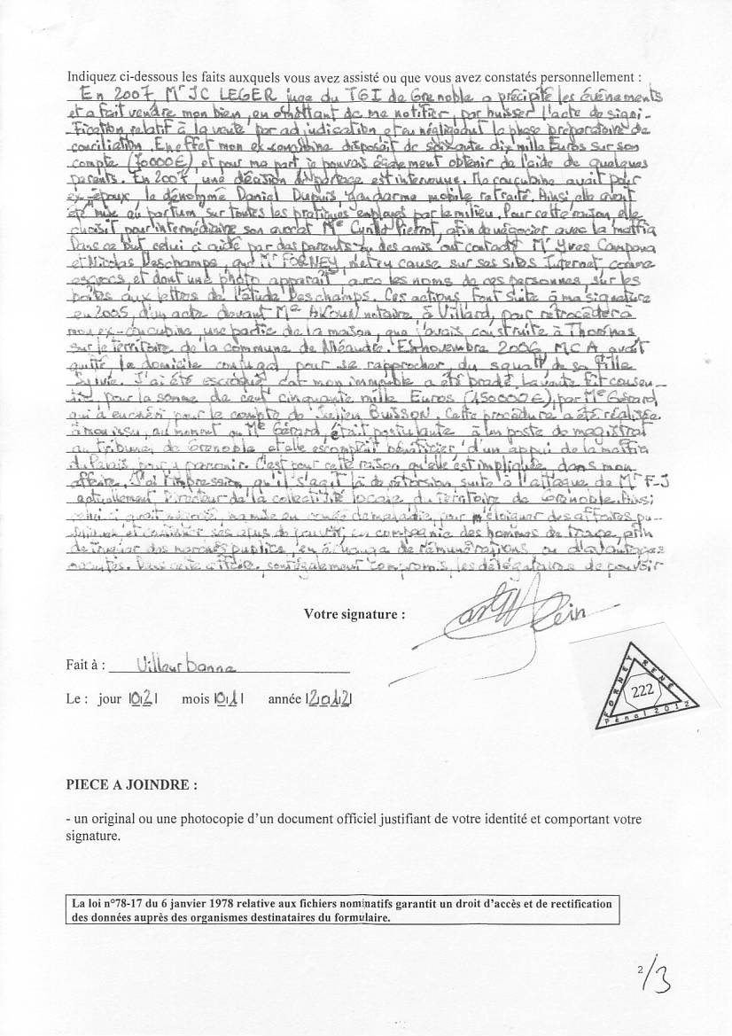 (Imprim. PDF) Plainte contre les juges corrompus Pièces 1, ... , 109 , 110 , 111 , 201, 202 ,..., 229, 230