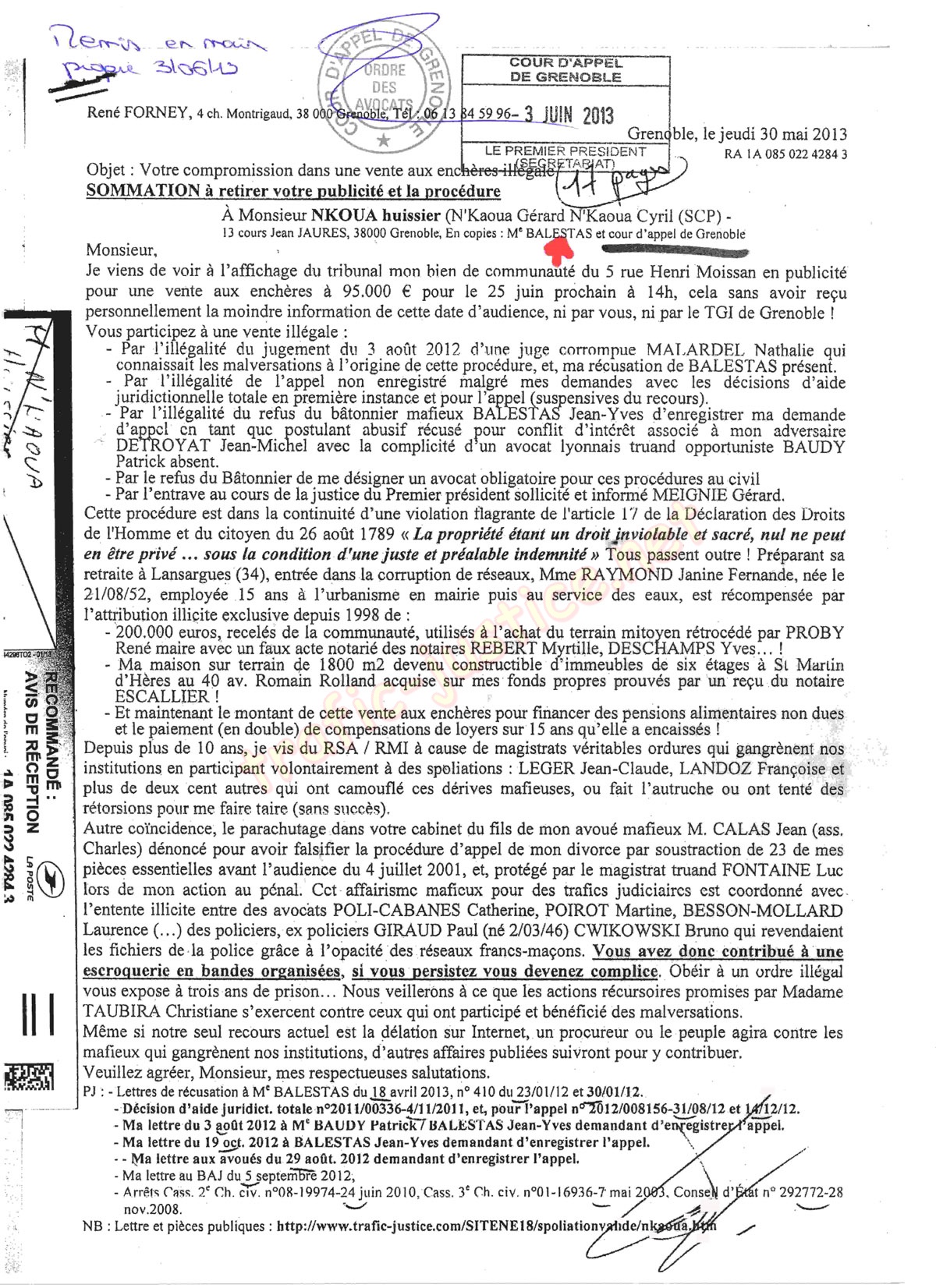 NB : Lettre et pièces publiques : https://www.trafic-justice.com/SITENE18/spoliationvalide/nkaoua.htm |