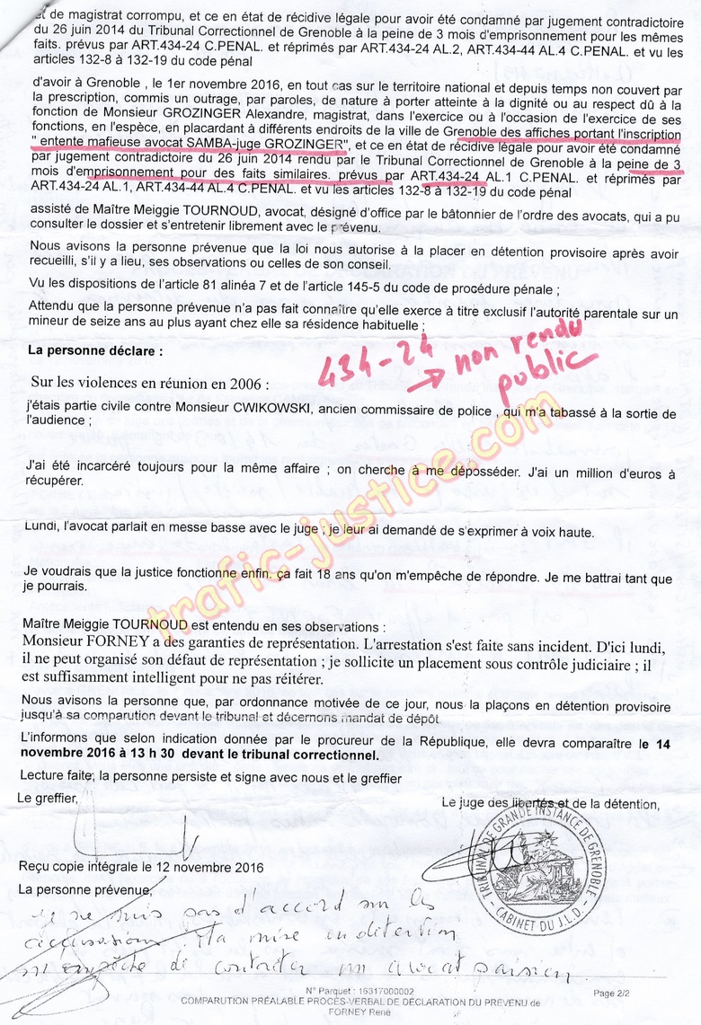 Laurence Christophole et sa greffière Fabienne CAMET mettent en prison une personne qu'elle savent victime de ses confrères crapuleux. C'est ce qu'il y a de pire comme ORDURE de notre MAGISTRATURE ! L'entente entre juges corrompus LANZA-PERRET fonctionne parfaitement Passible du CP 432-4 , 432-5 soit 30 ans de prison. Obéir à un ordre que l'on sait illégal ... 3 ans de prison |