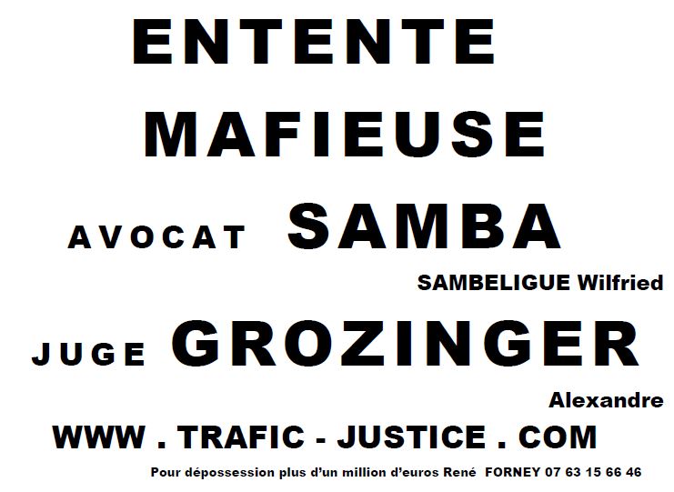 | Accueil - En 2014, après une journée de manifestation à l'appel de militants de Haute-Savoie à propos d'abus lors d'affaires familiales, déclarée devant le palais de justice de Thonon, le juge Alexandre GROZINGER fait convoquer René FORNEY par sa police à Thonon au prétexte de propos qui lui auraient déplut (!) (Sans succès) En 2016, déplacé à Grenoble, le juge se venge en validant le projet de partage (Dépossession illicite). Jusque là, aucun juge n'avait osé valider à cause du pot-de vin de 80.000 € versé au notaire Yves DESCHAMPS de Saint Égrève objet d'une procédure pénale toujours en cours d'instruction en 2024 (Depuis 2010 !). Récusé à l'audience, pour empêcher le recours contre sa spoliation de plusieurs millions d'euros, au prétexte outrage le juge envoi René 8 mois en prison à Varces et valide le faux du notaire.