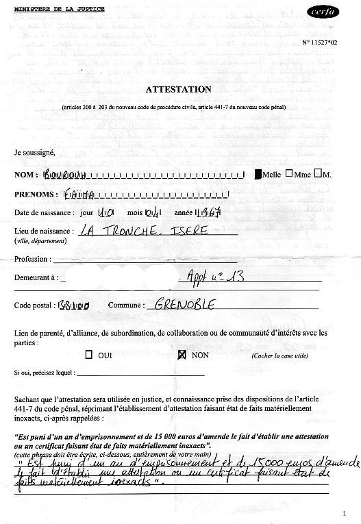 Pièce et témoignage affaire Mme BOUROUH (Texte recopié au dessous). (Dans la citation : voir) -2007 :1:45 DE :ORDRE DES AVOCATS 0476151037 A :0476432389 P.1/1 Grenoble le 12 janvier 2007
