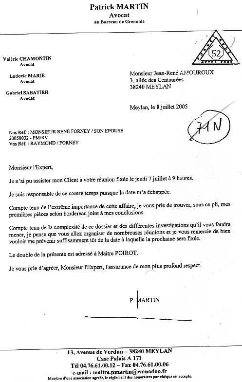 Dans la citation : voir - Présentée le 7 juillet 2009, cette pièce est dans les autres procédures : voir On peut lire sur la lettre : |