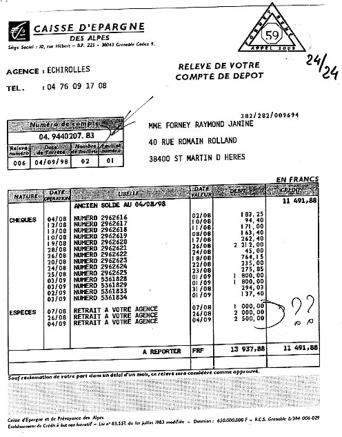 | Accueil Le juge LEGER Jean-Claude truand du réseau ? Pièces jointes aux conclusions d'appel sur une liquidation de communauté à l'origine d'une spoliation par des escrocs en bandes organisées dont des policiers, gendarmes, avocats, avouées, huissiers, experts, notaire, juges ... ? Preuves ci-après |