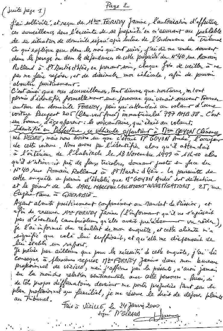Attestation de l'amant ( GIRAUD Paul Maurice) de mon épouse disant identifier le véhicule de mon détective à partir de la consultation illégale du fichier des cartes grises