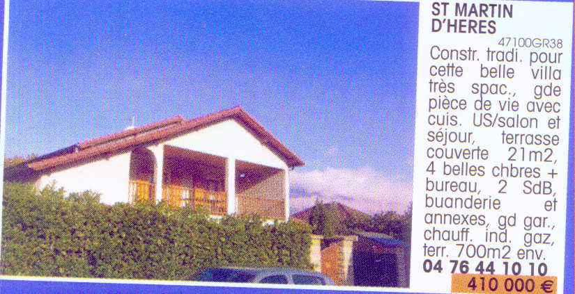 Des biens comparables que pour la maison (sans le terrain) mais sur des secteurs moins côtés de St Martin d'Hères ![]() Comparez avec la maison de caractère AUBRETON |