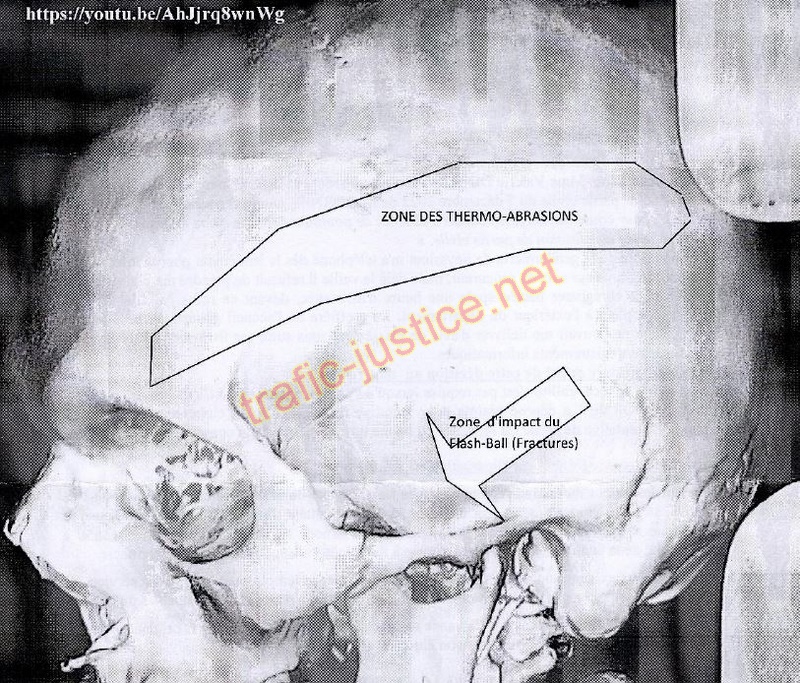 Les blessures et l'absence de marque sur les lunettes permettent de comprendre la chute brutale sans réaction de protection des bras ou des mains. C'est seulement l'appui sur une de vos deux jambes qui oriente la chute.