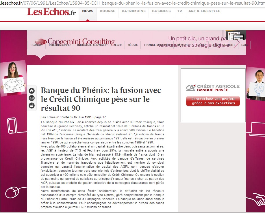 Banque du Phénix: la fusion avec le Crédit Chimique pèse sur le résultat 90