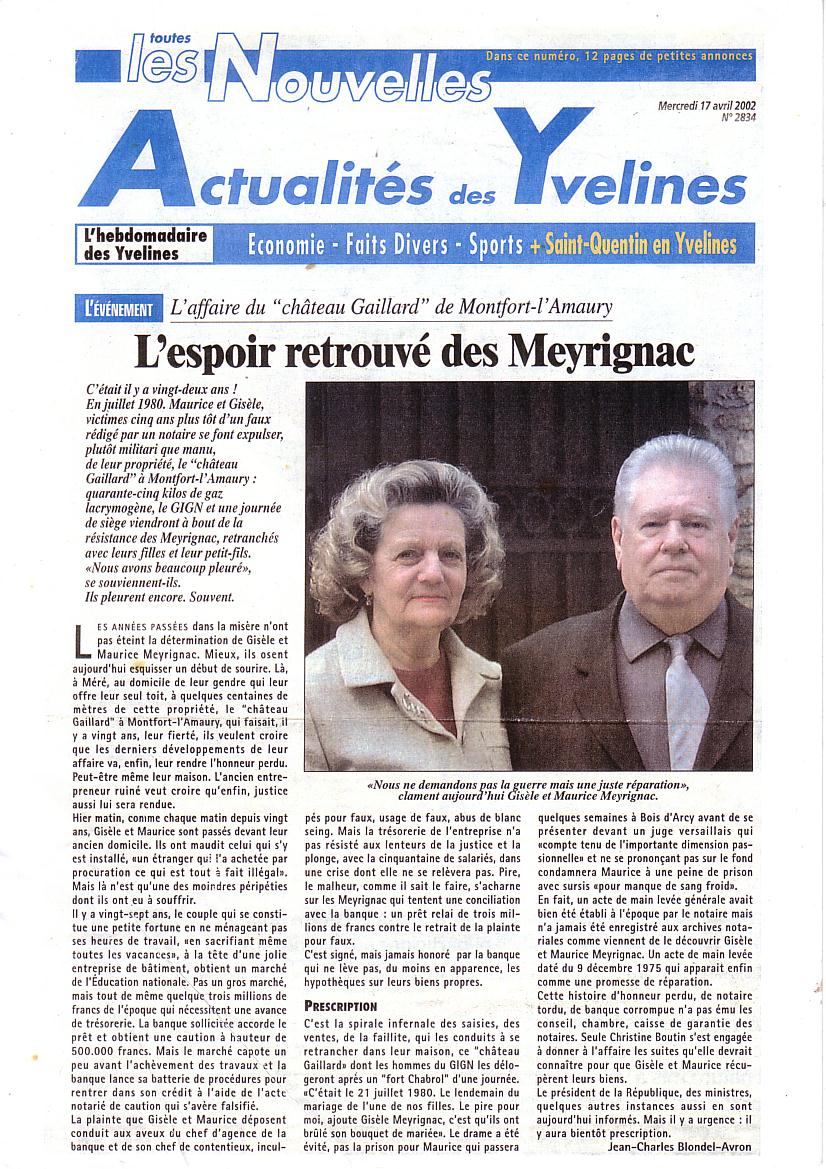 Les Nouvelles des Yvelines -19/07/2006: L'affaire Meyrignac rebondit