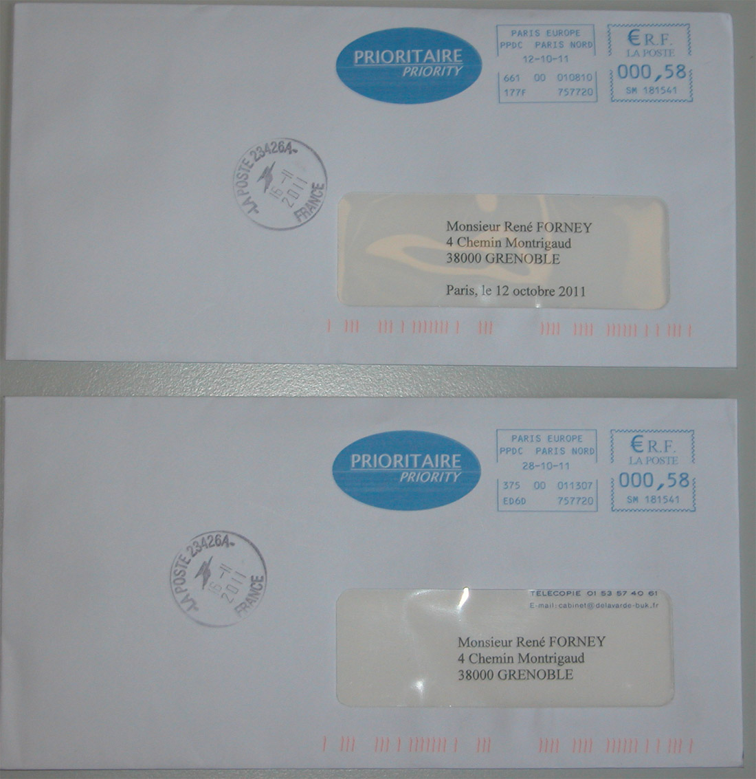 1 er détournement – Alors que je recevais normalement et régulièrement du courrier dans ma boîte aux lettres à mon domicile ci-dessus, début novembre 2011 plusieurs de mes relations m'informent que des courriers auraient dû me parvenir.