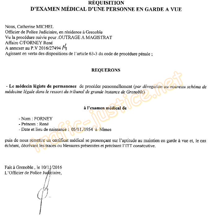 | Accueil Le 10/11/16 : encore un fois en prison avec des faux PV d'une accusation vide remis par la cour de LYON en 2019 Ici la psychiatre du CHU de Grenoble Isabelle NAHMANI accepte de faire un certificat de complaisance pour placer M. FORNEY 8 mois en prison. Oliver NAGABBO le procureur a caché, ces documents à la Cour de cassation qui a reconnu les méthodes illégales sans avocat de mise en détention de René FORNEY aux prétextes "outrages" pour se venger de ses publications du pot de vin de 83.000 euros (valeur 2019) versés aux notaires de l'étude Yves Nicolas Olivia DESCHAMPS à St Egrèves pour organiser la dépossession de René FORNEY Ces faussaires sont tous passibles du CP 432-4 (30 ans de prison) Témoignez à René FORNEY 07 63 15 6646 |
