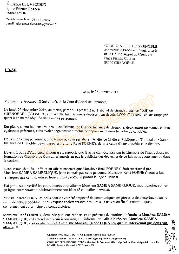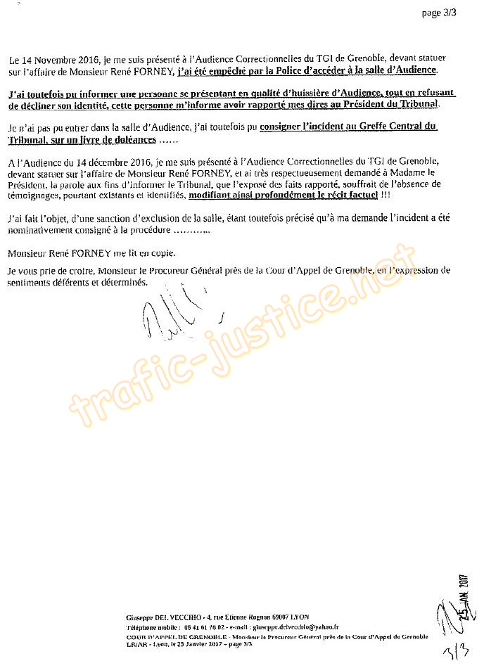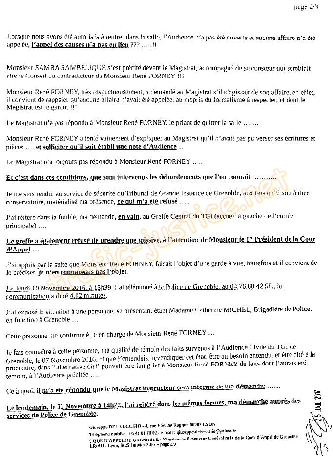 | Accueil - Le 10/11/2016 8 mois encore un fois en prison avec des faux PV remis par la cour de LYON en 2019 Aux témoins aussi c'est le barrage total pour qu'ils ne puissent pas exposer les faits sur une accusation d'outrage vide ! Oliver NAGABBO le procureur a aussi caché, ces documents à la Cour de cassation qui a reconnu les méthodes illégales sans avocat de mise en détention de René FORNEY aux prétextes "outrages" pour se venger de ses publications du pot de vin de 83.000 euros (valeur 2019) versés aux notaires de l'étude Yves Nicolas Olivia DESCHAMPS à St Egrèves pour organiser la dépossession de René FORNEY (Témoignez à René FORNEY 07 63 15 6646) |