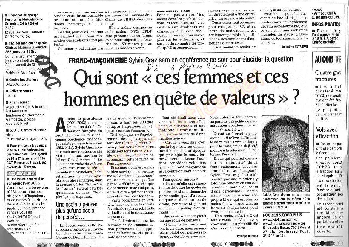 « .loges grenobloises.35 membres chacune (.700 que compte l'agglomération). » D10)