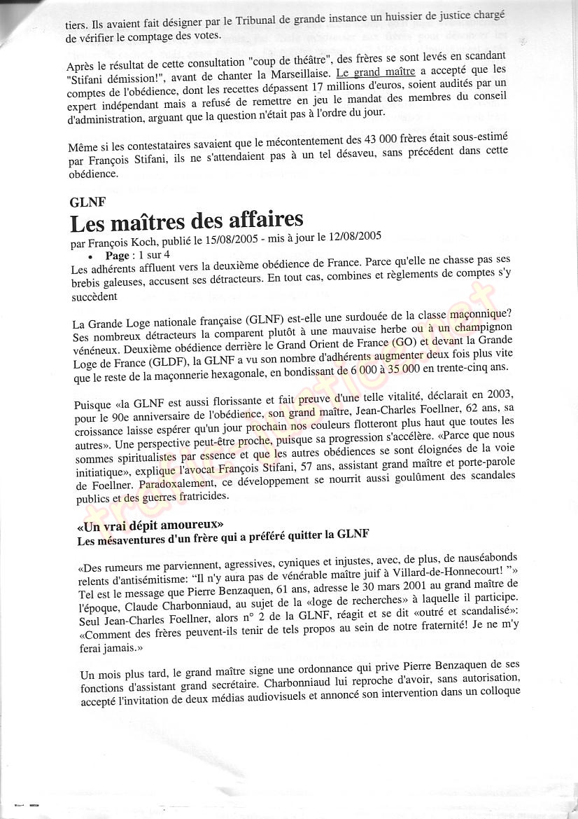 « . puissance financière d'affairiste.critique le système GNLF. magasines dénoncent régulièrement, l'implication des frères trois points dans les affaires politico-financières. (D11)