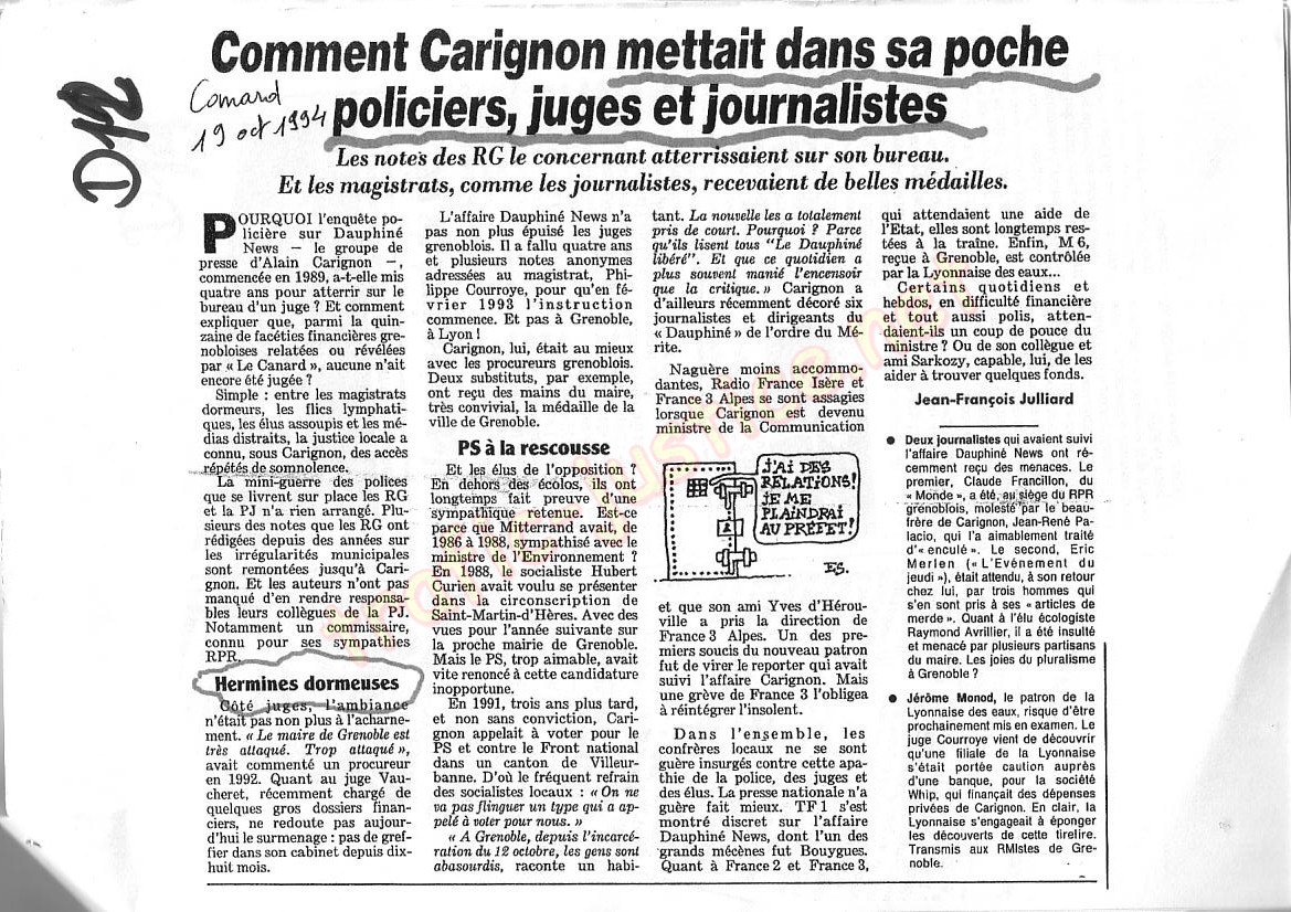 « . CARIGNON mettait dans sa poche policiers, juges et journalistes.Hermines dormeuses.( D12)
