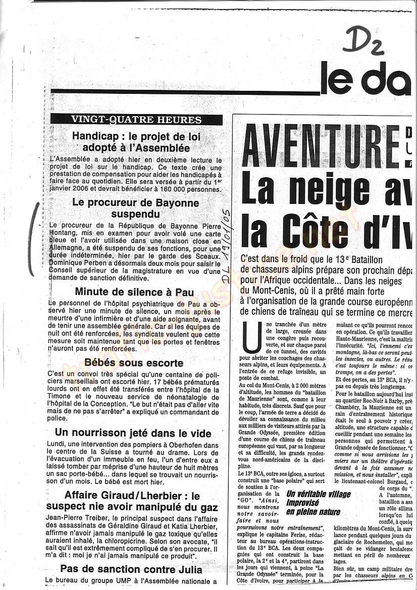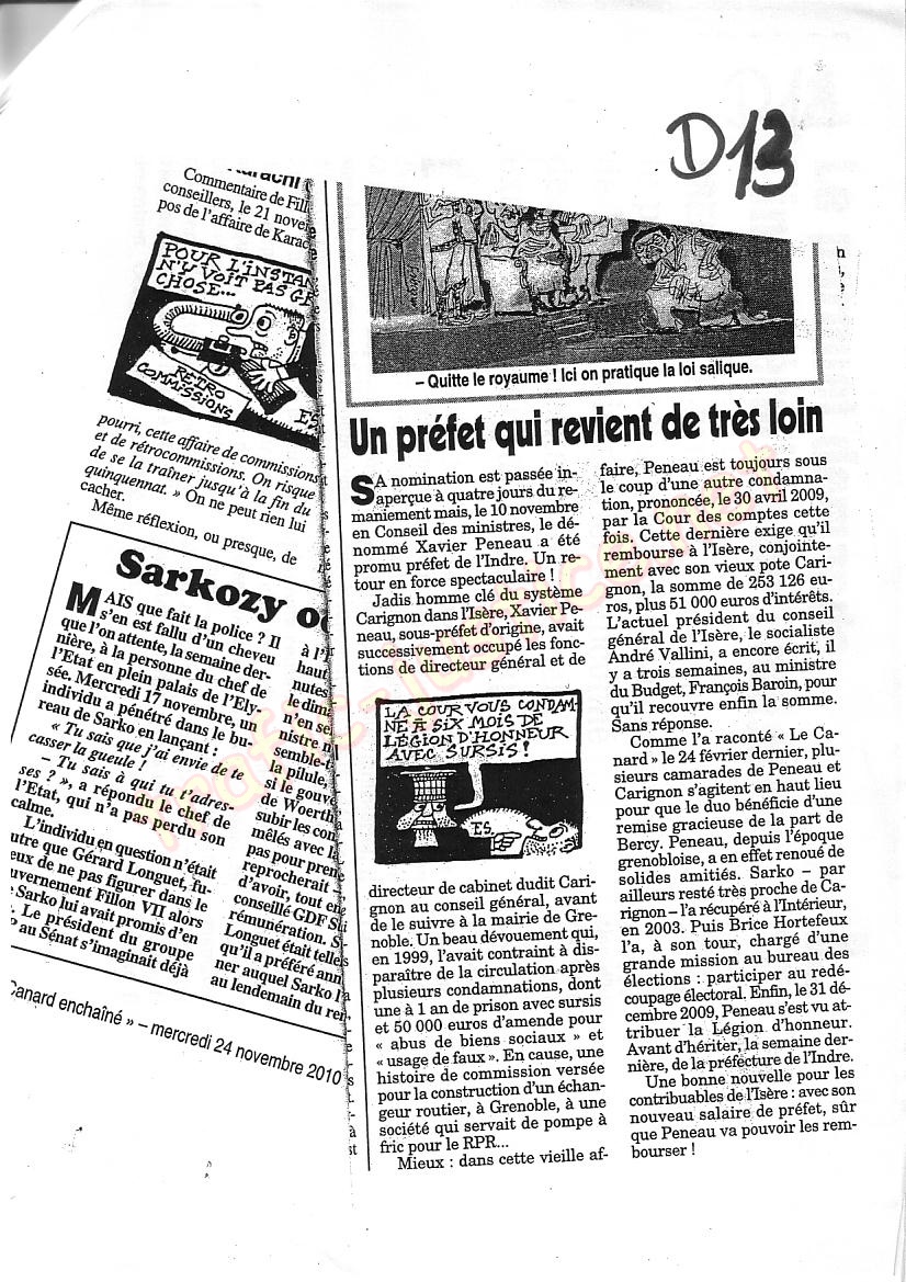 D - Articles de Presse : D1 :17/02/06 Libération - D2 :19/01/05 Dauphiné Libéré - D3 : 16/05/11 Le parisien - D4 : 23/02/11 Le Monde - D5 : 24/11/08 Marianne - D6 : 12/01/11 Canard - D7 : 01/10/05, 29/10/06 Express et Libération - D8 : 6/02/09 La nouvelle République - D9 : 13/12/03 La Dépêche - D10 : 4/02/10 Dauphiné Libéré - D11 : 13/03/10, 12/08/05 L'Express - D12 : 19/10/94 Dauphiné Libéré - D13 : 24/11/10 Canard - D14 : 8/04/03 Dauphiné Libéré |