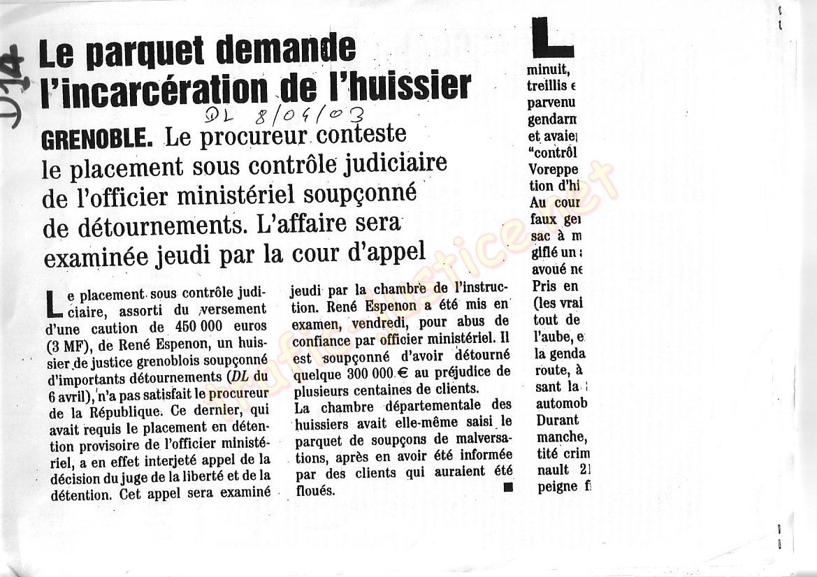 « . huissier . René Espenon. détourné quelques 300.000 € . (D14)