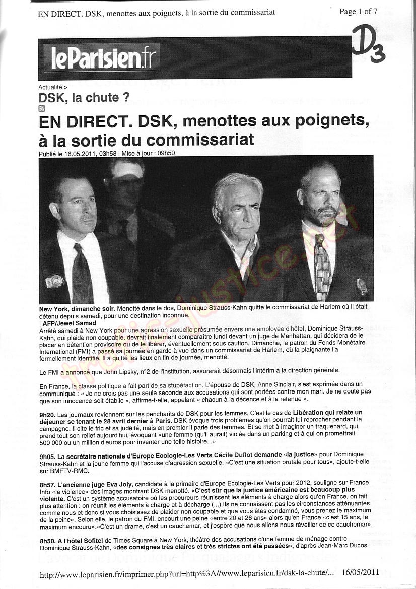 « DSK , la chute ? . arrêté samedi à New York pour une agression sexuelle. » (D3)