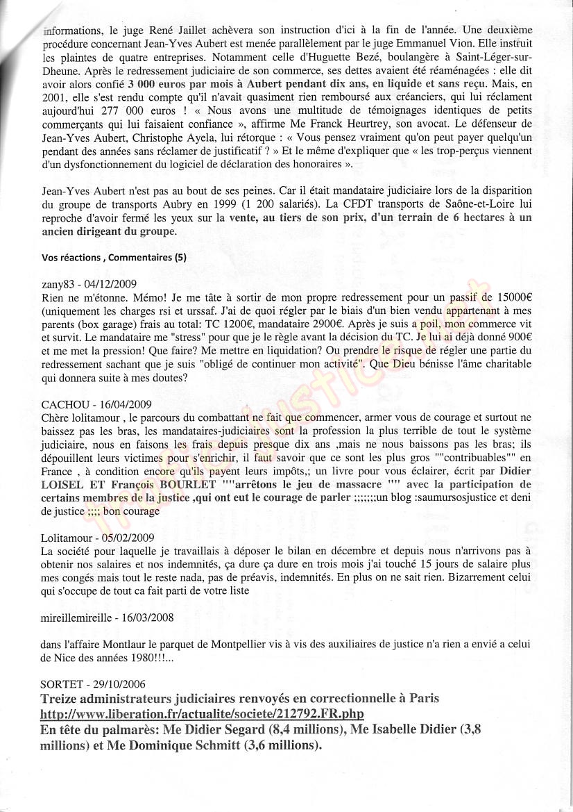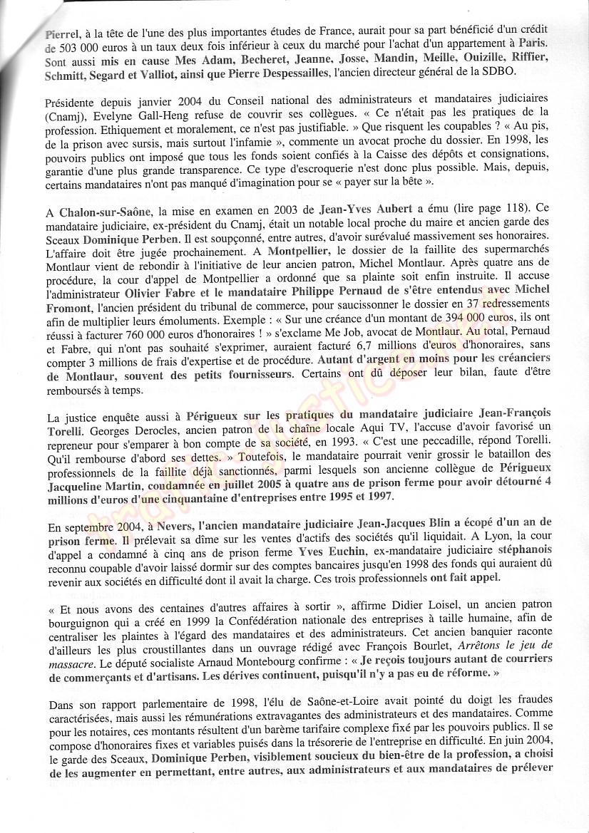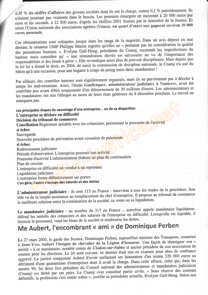 « Les arnaques des affairistes de la faillite. administrateurs et mandataires judiciaires. 581 000 euros de cadeau.détournement de 30 millions d'euros . (D7)